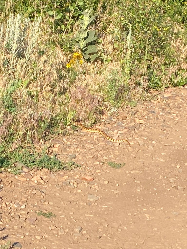 We did not make it through the whole trail! We saw a little bull snake at the beginning of the trail. Then, later on we saw a huge angry rattle snake right next to the trail and decided it was time to call it quits! This was our first hike in Colorado.